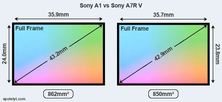 Both cameras under consideration feature a full frame sensor, but their sensors differ slightly in size. The sensor area in the A7R V is 1 percent smaller. They nevertheless have the same format factor of 1.0. Both cameras have a native aspect ratio (sensor width to sensor height) of 3:2.