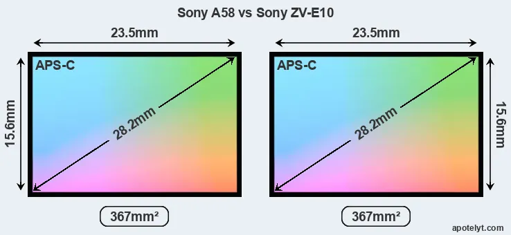 | Sensor Specs | Sony A58 | Sony ZV-E10 |