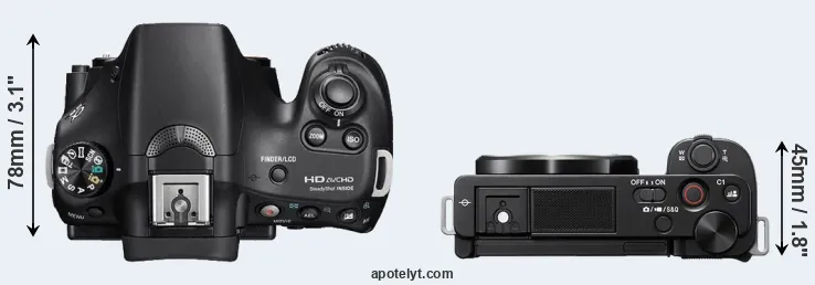 | 1. | Sony A58 | 129 mm | 95 mm | 78 mm | 492 g | 690 | n | Feb 2013 | US$ 599 | ebay.com | |