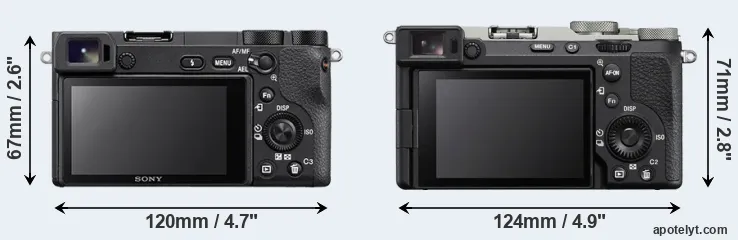 | 15. | Sony A6700 | 122 mm | 69 mm | 64 mm | 493 g | 570 | Y | Jul 2023 | US$ 1 399 | amazon.com | |
