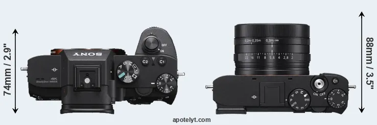The above size and weight comparisons are to some extent incomplete and possibly misleading, as the RX1R III has a lens built in, whereas the A7 III is an interchangeable lens camera that requires a separate lens. Attaching the latter will add extra weight and bulk to the setup. You can compare the optics available for the A7 III and their specifications in the Sony FE Lens Catalog.