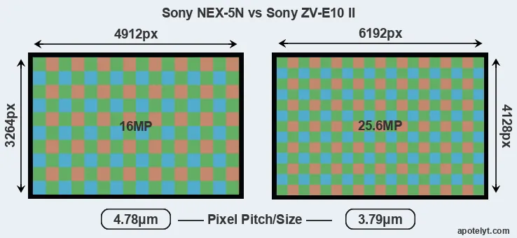 | Sensor Specs | Sony NEX-5N | Sony ZV-E10 II |