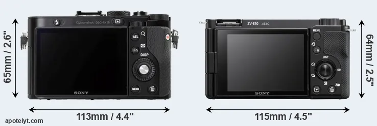 | Screen Specs | Sony RX1R | Sony ZV-E10 |