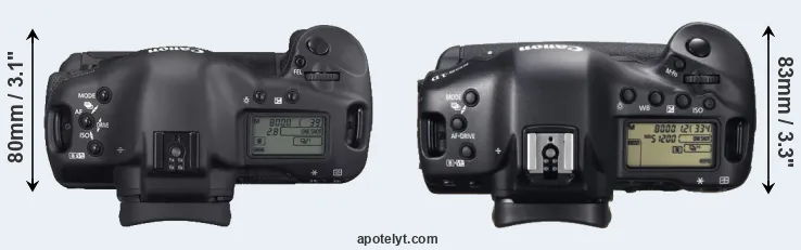 | 7. | Canon 1Ds Mark II | 156 mm | 158 mm | 80 mm | 1215 g | 1200 | Y | Sep 2004 | US$ 7 999 | ebay.com | |