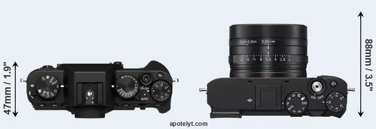 | 5. | Fujifilm X-E3 | 121 mm | 74 mm | 43 mm | 337 g | 350 | n | Sep 2017 | US$ 899 | ebay.com | |