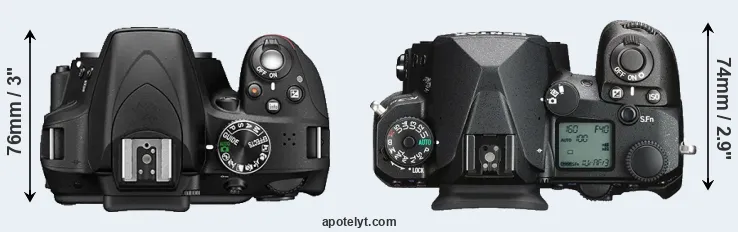 | 16. | Pentax KP | 132 mm | 101 mm | 76 mm | 703 g | 390 | Y | Jan 2017 | US$ 1 099 | ebay.com | |