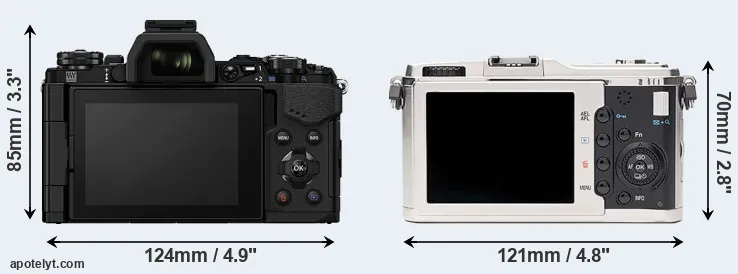 Die physische Größe und das Gewicht der Olympus E-M5 II und der Olympus E-P1 werden in der nachfolgenden Graphik illustriert. Die beiden Kameras werden entsprechend ihrer relativen Größe dargestellt. Alle Größenangaben sind auf den nächsten Millimeter gerundet.