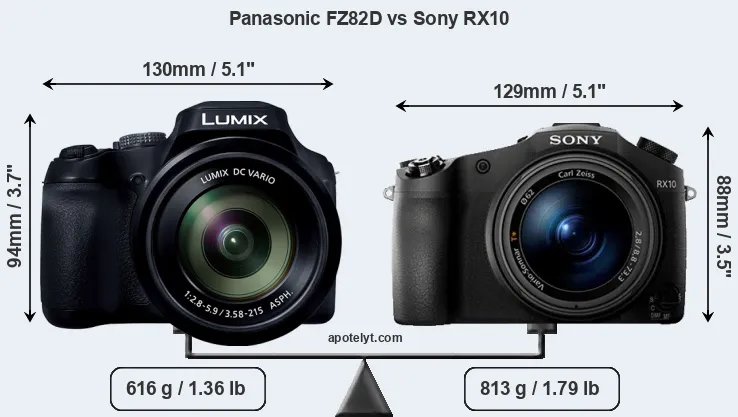 Die physische Größe und das Gewicht der Panasonic FZ82D und der Sony RX10 werden in der nachfolgenden Graphik illustriert. Die beiden Kameras werden entsprechend ihrer relativen Größe dargestellt. Alle Größenangaben sind auf den nächsten Millimeter gerundet.