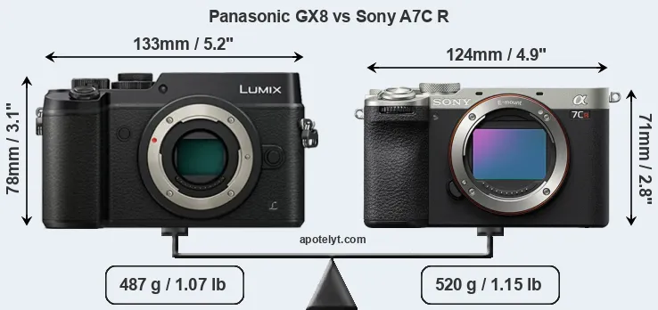 Die physische Größe und das Gewicht der Panasonic GX8 und der Sony A7C R werden in der nachfolgenden Graphik illustriert. Die beiden Kameras werden entsprechend ihrer relativen Größe dargestellt. Alle Größenangaben sind auf den nächsten Millimeter gerundet.