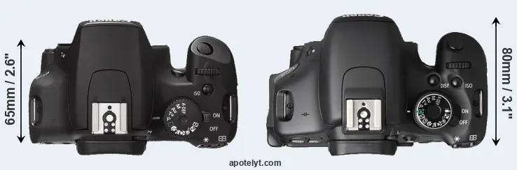 | 15. | Canon T5i | 133 mm | 100 mm | 79 mm | 580 g | 440 | n | mar 2013 | US$ 649 | ebay.com | |