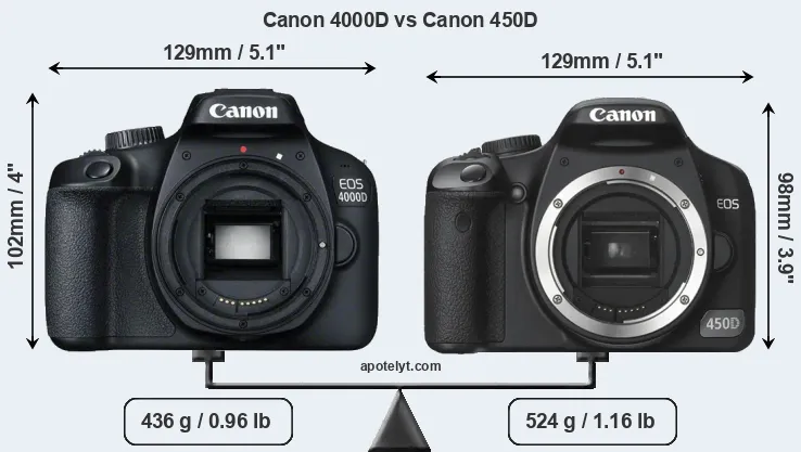 Size Canon 4000D vs Canon 450D