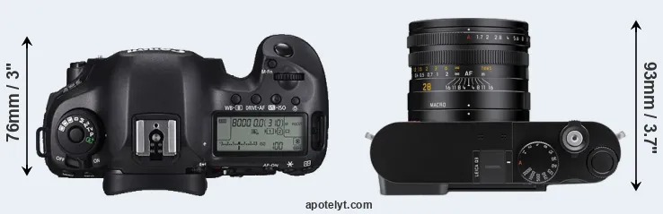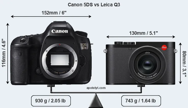Más allá de esta instantánea de las funciones y características principales, ¿cuáles son las diferencias entre la Canon EOS 5DS y la Leica Q3? ¿Cuál camara deberías comprar? Siga leyendo para descubrir cómo se comparan estas dos cámaras con respecto al tamaño de su cuerpo y otras caracteristicas.