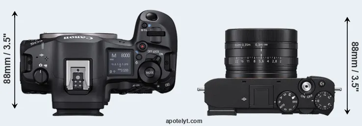 | 3. | Canon R1 | 158 mm | 150 mm | 87 mm | 1115 g | 1330 | Y | jul 2024 | US$ 6 299 | amazon.com | |