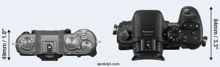 El tamaño físico y el peso de Fujifilm X-T50 y Panasonic GH4 se ilustran en el siguiente gráfico. Las dos cámaras se muestran según su tamaño relativo. Todas las dimensiones están redondeadas al milímetro más cercano.