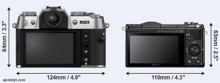 Más allá de esta instantánea de las funciones y características principales, ¿cuáles son las diferencias entre la Fujifilm X-T50 y la Sony Alpha A5000? ¿Cuál camara deberías comprar? Siga leyendo para descubrir cómo se comparan estas dos cámaras con respecto al tamaño de su cuerpo y otras caracteristicas.