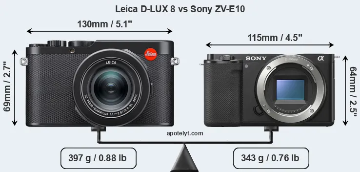 Size Leica D-LUX 8 vs Sony ZV-E10