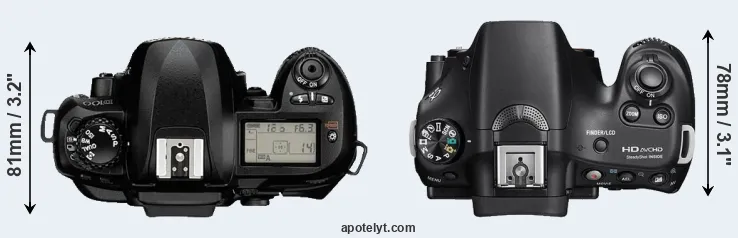 | 2. | Sony A58 | 129 mm | 95 mm | 78 mm | 492 g | 690 | n | feb 2013 | US$ 599 | ebay.com | |