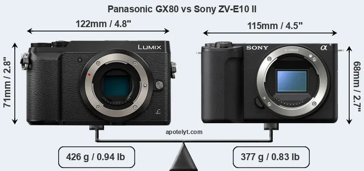 Size Panasonic GX80 vs Sony ZV-E10 II