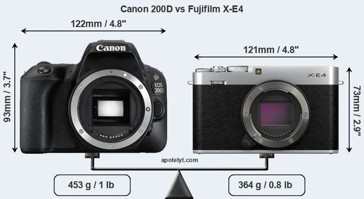 Size Canon 200D vs Fujifilm X-E4