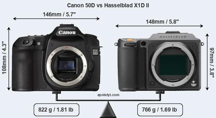 Size Canon 50D vs Hasselblad X1D II