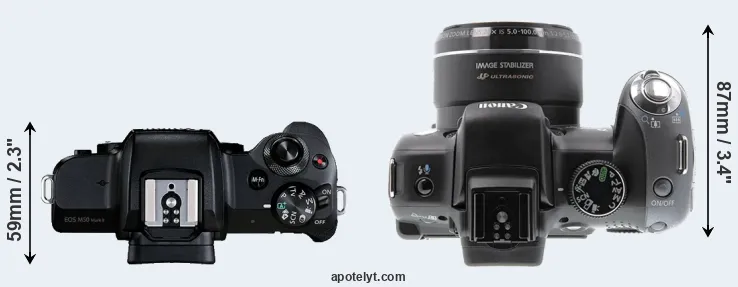 | 1. | Canon M50 Mark II | 116 mm | 88 mm | 59 mm | 387 g | 305 | n | Oct 2020 | US$ 599 | ebay.com | |