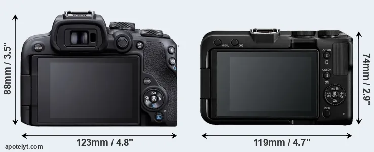 | 9. | Canon R50 | 116 mm | 86 mm | 69 mm | 375 g | 230 | n | Feb 2023 | US$ 679 | amazon.com | |