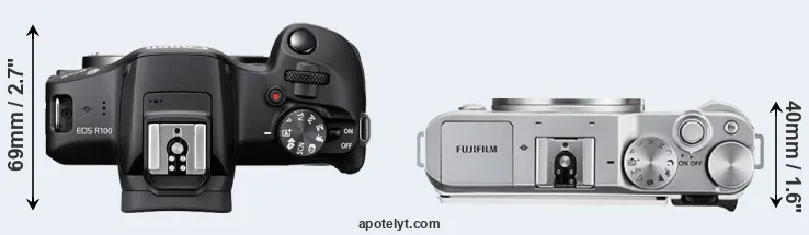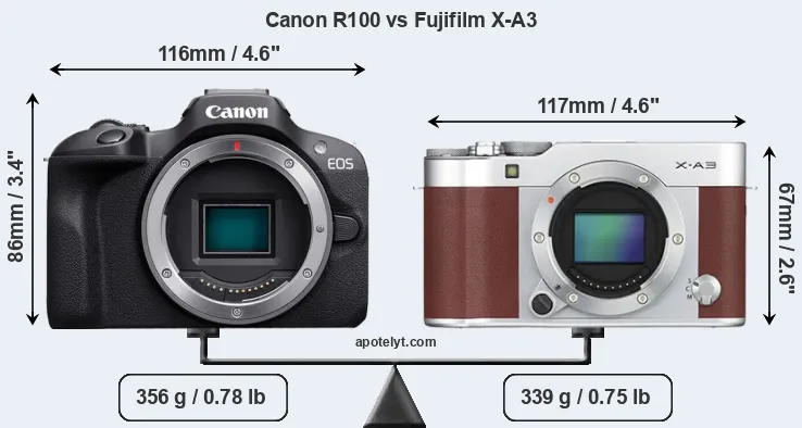 Size Canon R100 vs Fujifilm X-A3