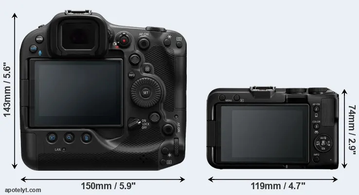 | 14. | Canon R50 | 116 mm | 86 mm | 69 mm | 375 g | 230 | n | Feb 2023 | US$ 679 | amazon.com | |