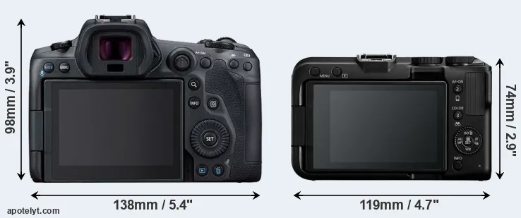 | 8. | Canon R50 | 116 mm | 86 mm | 69 mm | 375 g | 230 | n | Feb 2023 | US$ 679 | amazon.com | |