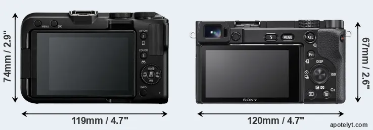 | 2. | Sony A6100 | 120 mm | 67 mm | 59 mm | 396 g | 420 | n | Aug 2019 | EUR 899 | ebay.com | |