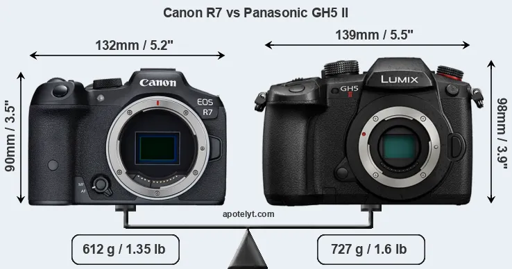Size Canon R7 vs Panasonic GH5 II