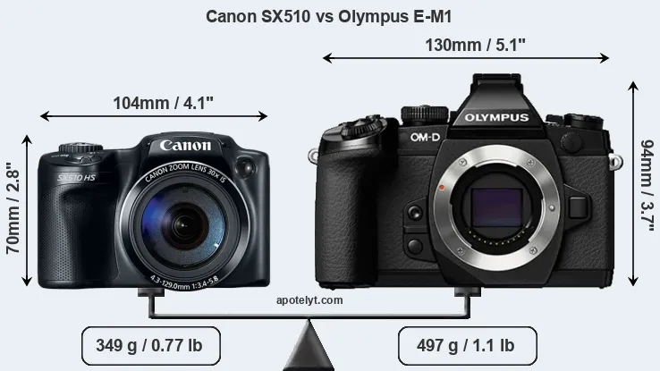 Size Canon SX510 vs Olympus E-M1