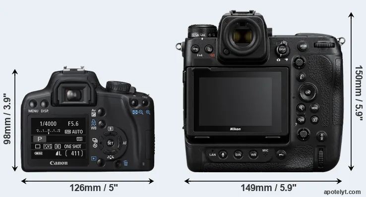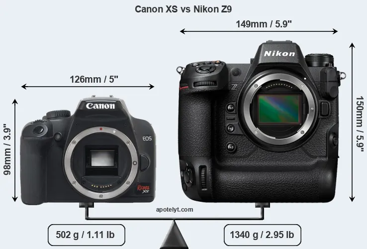 Size Canon XS vs Nikon Z9