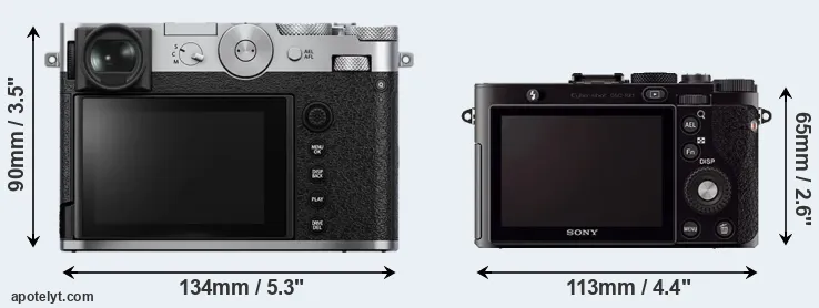 La taille physique et le poids du Fujifilm GFX 100RF et du Sony RX1 sont illustrés dans le graphique ci-dessous. Les deux caméras sont affichées en fonction de leur taille relative. Toutes les dimensions sont arrondies au millimètre près.