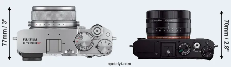 Size Fujifilm GFX 100RF vs Sony RX1R