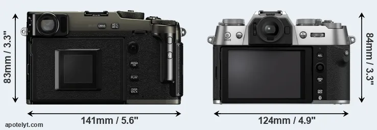 | 2. | Fujifilm X-T50 | 124 mm | 84 mm | 49 mm | 438 g | 305 | n | May 2024 | US$ 1 399 | amazon.com | |