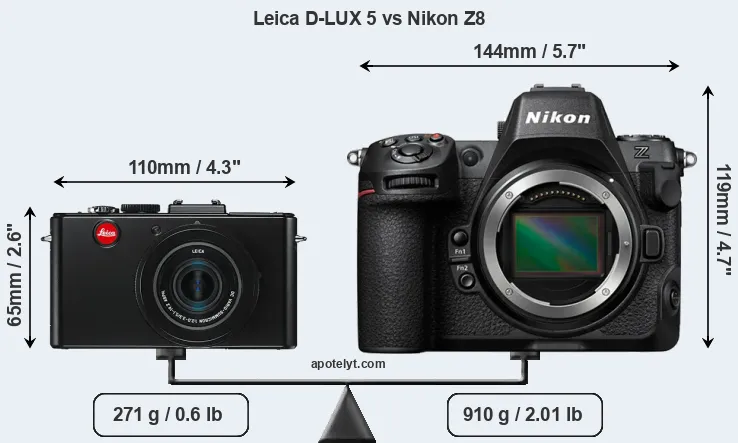 Size Leica D-LUX 5 vs Nikon Z8