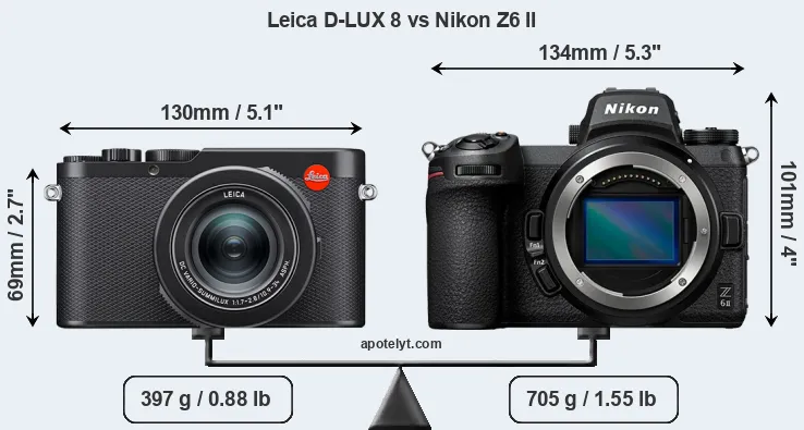 Size Leica D-LUX 8 vs Nikon Z6 II