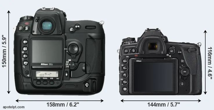 | 7. | Nikon D2Xs | 158 mm | 150 mm | 86 mm | 1252 g | 3800 | Y | Jun 2006 | US$ 4 699 | ebay.com | |