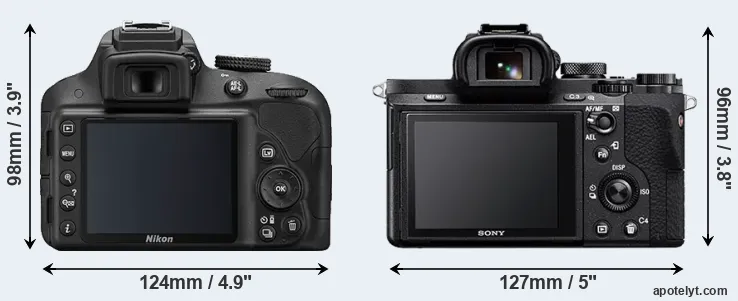 La taille physique et le poids du Nikon D3300 et du Sony A7 II sont illustrés dans le graphique ci-dessous. Les deux caméras sont affichées en fonction de leur taille relative. Toutes les dimensions sont arrondies au millimètre près.