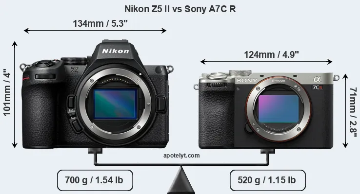Le Nikon Z5 II et le Sony Alpha A7C R sont deux appareils photo numériques, qui ont été révélés au public, respectivement, en April 2025 et August 2023. Les deux sont des appareil photo à objectif interchangeable sans miroir, qui sont équipés d'un capteur plein format. Le Nikon a une résolution de 24,4 mégapixels, alors que le Sony fournit 60,2 MP.