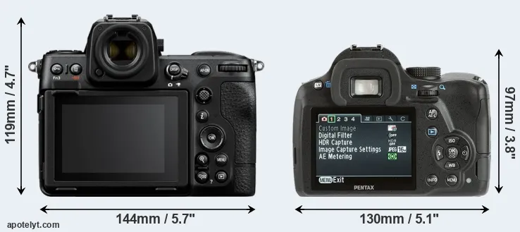 Le Nikon Z8 et le Pentax K-500 sont deux appareils photo numériques, qui ont été révélés au public, respectivement, en May 2023 et June 2013. Le Z8 est un appareil photo à objectif interchangeable sans miroir, tandis que le K-500 est un appareil photo reflex numérique. Les caméras sont équipés d'un capteur plein format (Z8) et un capteur APS-C (K-500). Le Nikon a une résolution de 45,4 mégapixels, alors que le Pentax fournit 16,1 MP.