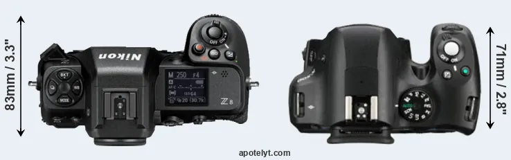 | 1. | Nikon Z8 | 144 mm | 119 mm | 83 mm | 910 g | 340 | Y | May 2023 | US$ 3 999 | amazon.com | |