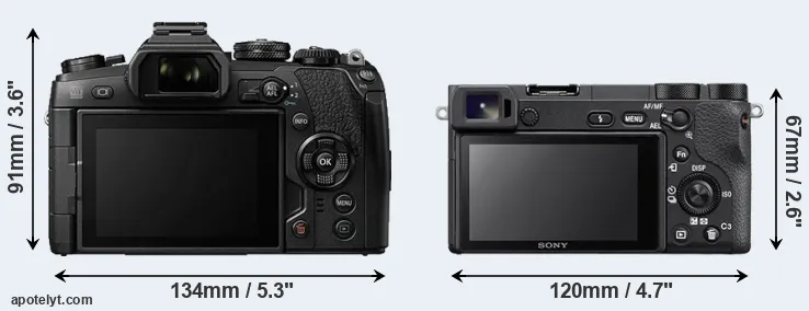 La taille physique et le poids du Olympus E-M1 II et du Sony A6500 sont illustrés dans le graphique ci-dessous. Les deux caméras sont affichées en fonction de leur taille relative. Toutes les dimensions sont arrondies au millimètre près.