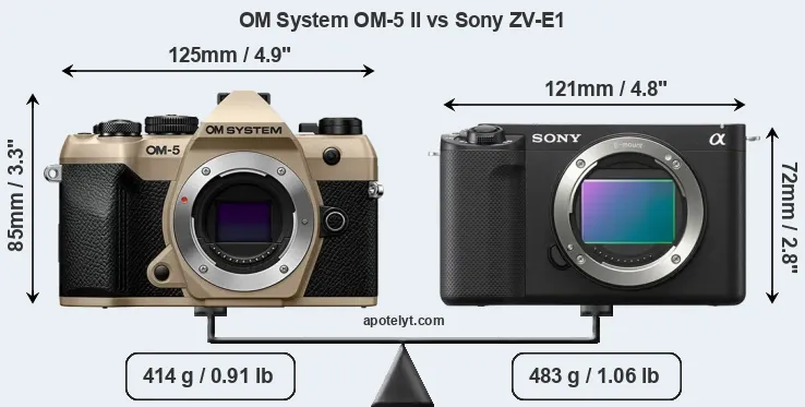 Le OM System OM-5 II et le Sony ZV-E1 sont deux appareils photo numériques, qui ont été révélés au public, respectivement, en June 2025 et March 2023. Les deux sont des appareil photo à objectif interchangeable sans miroir, qui sont équipés d'un capteur quatre tiers (OM-5 II) et un capteur plein format (ZV-E1). Le OM System a une résolution de 20,2 mégapixels, alors que le Sony fournit 12,0 MP.