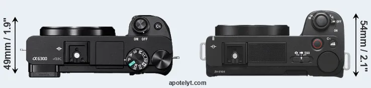 La taille physique et le poids du Sony A6300 et du Sony ZV-E10 II sont illustrés dans le graphique ci-dessous. Les deux caméras sont affichées en fonction de leur taille relative. Toutes les dimensions sont arrondies au millimètre près.