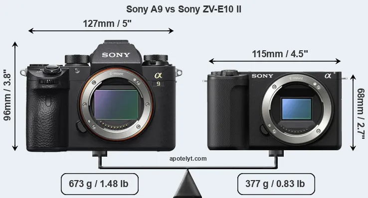 Le Sony Alpha A9 et le Sony ZV-E10 II sont deux appareils photo numériques, qui ont été révélés au public, respectivement, en April 2017 et July 2024. Les deux sont des appareil photo à objectif interchangeable sans miroir, qui sont équipés d'un capteur plein format (A9) et un capteur APS-C (ZV-E10 II). Le A9 a une résolution de 24,0 mégapixels, alors que le ZV-E10 II fournit 25,6 MP.