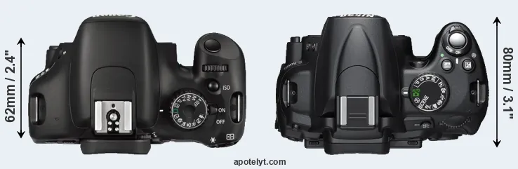 | 4. | Canon 600D | 133 mm | 100 mm | 80 mm | 570 g | 440 | n | feb 2011 | US$ 599 | ebay.com | |