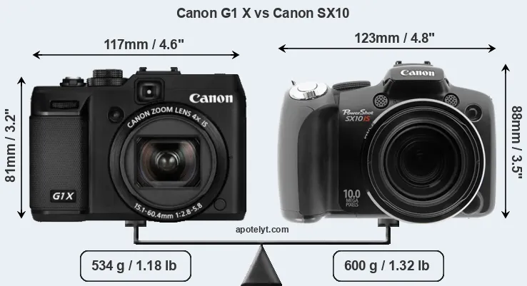 Size Canon G1 X vs Canon SX10