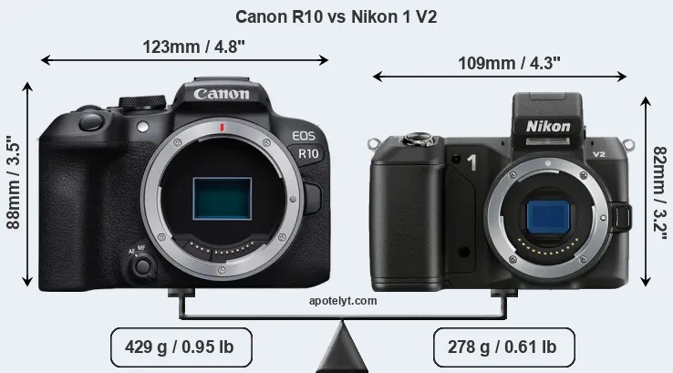 Andando oltre questa istantanea delle caratteristiche e delle caratteristiche principali, quali sono le differenze tra Canon EOS R10 e Nikon 1 V2? Quale dovresti comprare? Continua a leggere per scoprire come si confrontano queste due fotocamere rispetto alle dimensioni del corpo e altre caratteristiche.